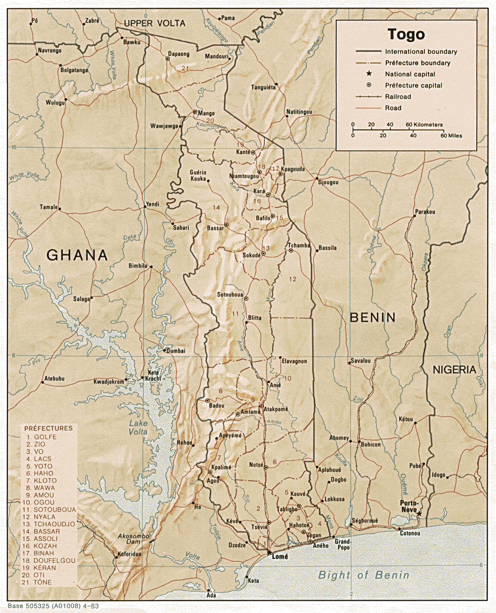 Le Togo, officiellement la République togolaise, est un pays d'Afrique de l'Ouest d'une superficie d'environ 56 600 km². Sa geographie Togo est caractérisée par une étroite bande de terre s'étirant du nord au sud sur environ 600 km, avec une largeur ne dépassant pas 150 km. Cette forme allongée lui confère une diversité de paysages remarquable : une côte sablonneuse bordant le golfe de Guinée au sud, une région de plateaux et de collines au centre, et des savanes et des montagnes modestes au nord. Le pays partage ses frontières avec le Ghana à l'ouest, le Bénin à l'est et le Burkina Faso au nord. Consulter une carte Togo détaillée permet d'apprécier cette configuration unique et son positionnement stratégique dans la sous-région.